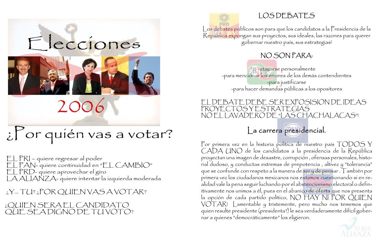 Este trabajo tiene algo de historia ya que antes de hacerlo un día mientras daba clases de ingles con mi niños me toco enseñarles los nombres de distintos lugar en la ciudad y en eso nos toco que la corte (que en español seria como los juzgados) y ese día tuve me espante ya que al tratarles de explicarles el sistema “legal” en estados unidos y es cuando vi que ninguno de ellos creían en la política ni que México podría salir del hoyo de donde estaban. Okay son solo niños pero de ahí pude notar mucho de lo que sus propios padres piensa y los valores que les están pasando desde chicos. Lastima que no pude platicar mas con ellos y darles a entender que en ellos esta, y que si ellos cuando sean grandes se esfuerzan México podría cambiar pero bueno.